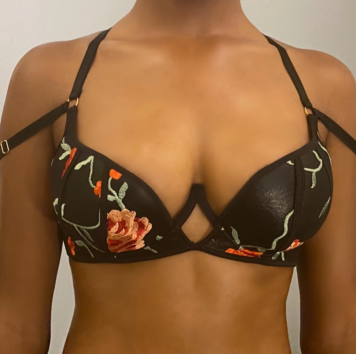I am usually skeptical of faux leather lingerie because I have seen brands use it and the bras can have this weird layer of thin fabric that wrinkles and looks cheaper as the bra ages. However, Blue Reign seems to master the use of this material. I have seen their products on a handful of customers on the internet and they always looked flawless. I am not sure how my breast shape would work with their signature pattern but I am so hopeful!