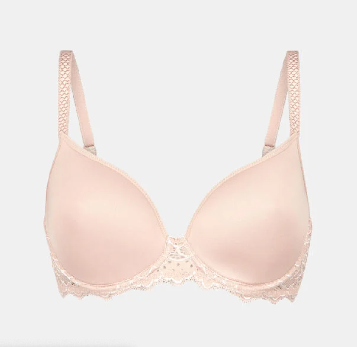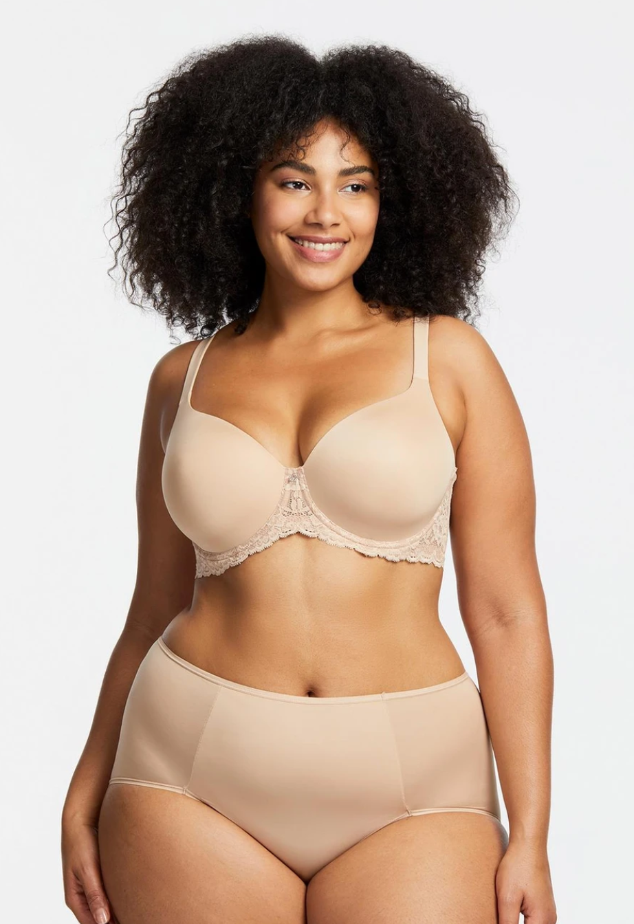 [Up left : All Hours Leni 145 USD , Bottom left: Simone Pérèle Caresse 92USD, Right: Montelle Pure Plus Full Coverage T-Shirt Bra 50 USD ]