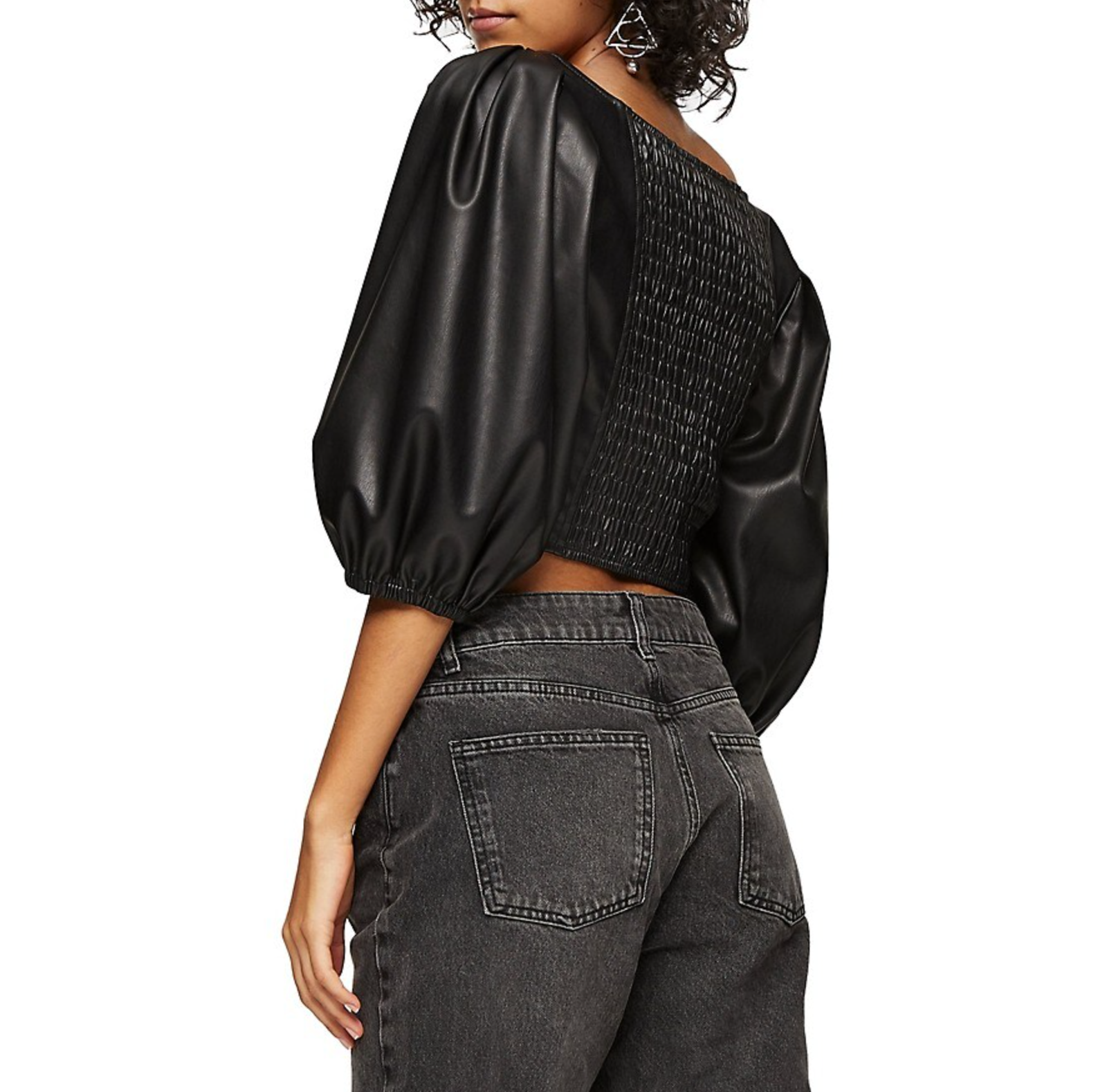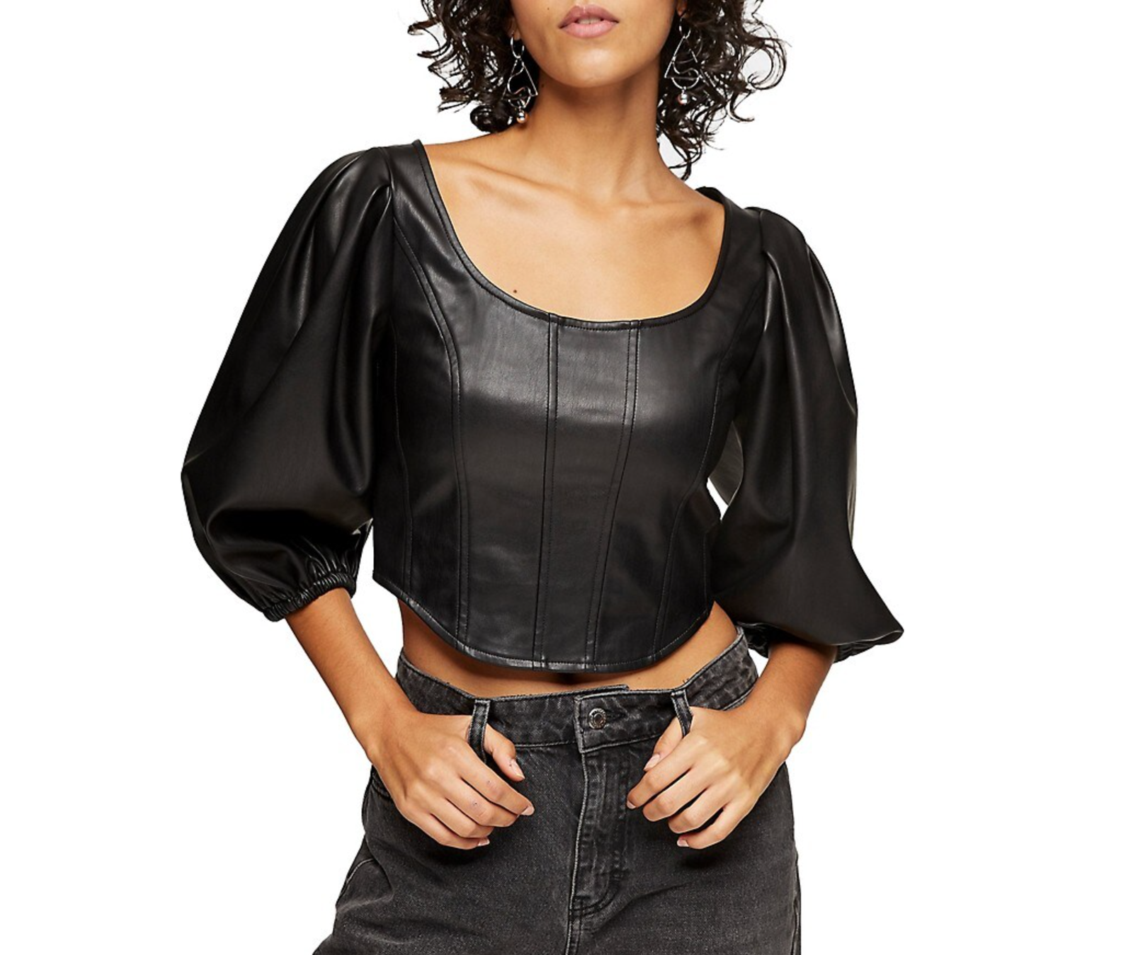 Top shop faux leather puff sleeves cropped top